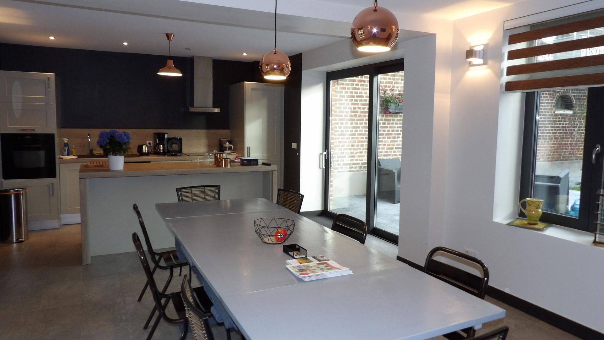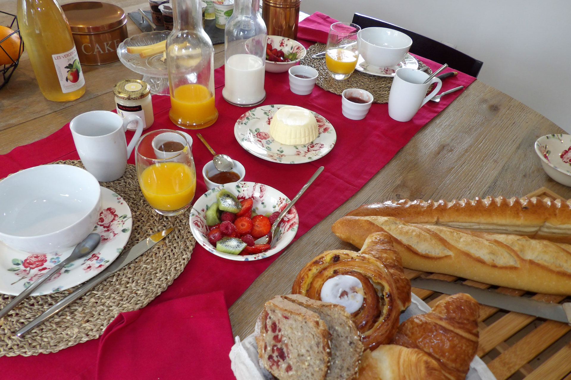 Moderne et lumineuse, la cuisine qui donne sur le jardin vous accueille chaque matin pour un savoureux petit-déjeuner servi à table. Au menu, Sylvie vous propose viennoiseries, pain, café, différents thés, chocolat, jus de fruits, confitures, yaourts, fruits frais ou salade de fruits, ainsi que fromages et charcuterie. Idéal pour bien démarrer la journée, avec des produits locaux des fermes environnantes !